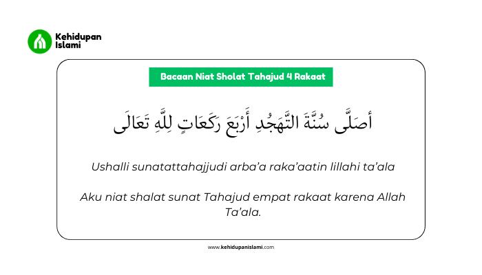 Aku niat shalat sunat Tahajud empat rakaat karena Allah Ta’ala.